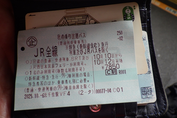 どうにかなったが発車時刻が近かったので呑み鉄はナシ。ガブ飲みもおあずけ。 精算、そして……さて、今回は、秋の乗り放題パスという新しいアイテムを取り入れてみた。これは、先述のとおり青春18きっぷの秋版という立ち位置で、青春18きっぷの3日版よりも安い7850円で利用できる。