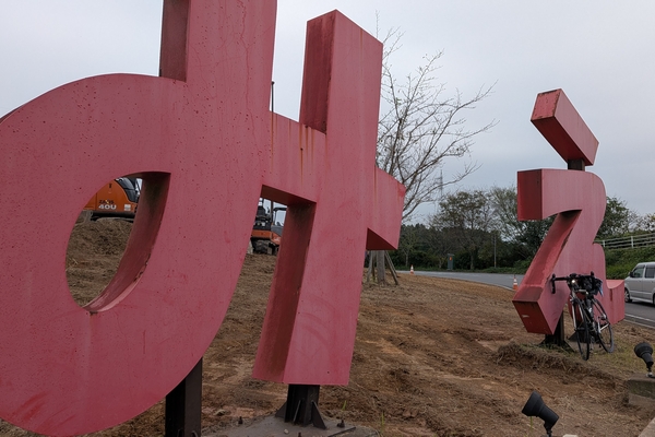 熊本市の文字が。 熊本市のカントリーサインが見えてきて、もうすぐフィニッシュかぁ、とか思いながら走っていると、エルコスさんが再び声を上げる。