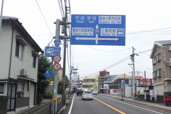 直進してしまったR502は、竹田市街をバイパスするように市街南側を通っている。また、このあたりは岡藩という領土があり、その城址へと続く道が接続されている。つまり、