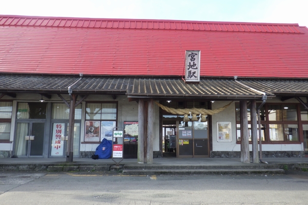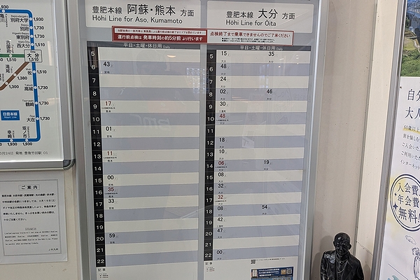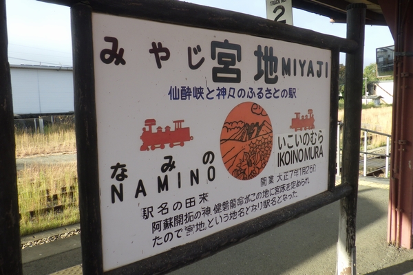 列車は宮地止まり。 とりあえず、終着の宮地駅まで来た。このまま乗り換えて熊本方面を目指しても良いのだけれど、こんだけ晴れているのに乗り鉄決め込むのは聊か勿体ない。