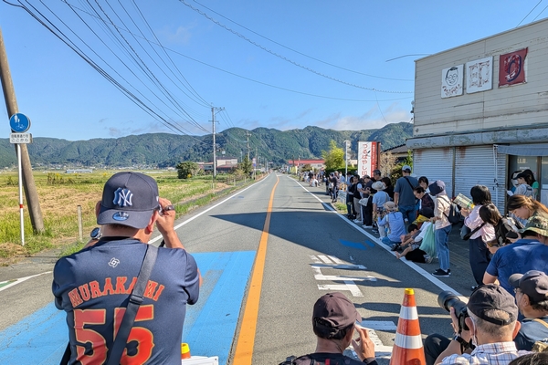 聞くところによれば、南小国を9:00スタートして、この折り返しにやってくるのは9:30過ぎだという。スタート地点からここまでの距離はおよそ23キロで、それを30分強で走り切るということは、