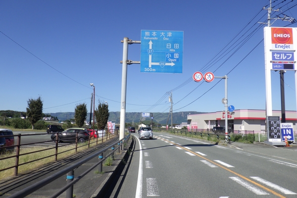 一方、熊本から阿蘇方面、すなわち東の方向にR57を用いる場合、交通量が多いうえに、阿蘇までの区間が思った以上に勾配がきつく、特に、白川と黒川が創り出す渓谷の脇を通る辺りは、道幅が狭いうえにインナー必須の斜度があるので、ちょっと厳しいと思われる。