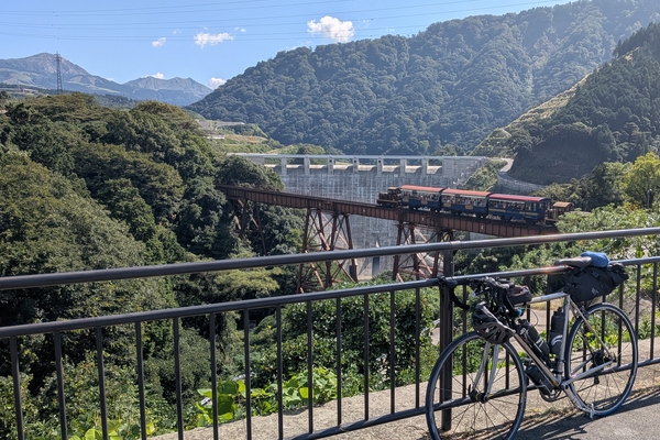 よくよく見たら、あちこちでTDK推しだった。 ダムとスイッチバックと観光列車と。阿蘇からはR57を西に進むだけでいい。完全な下り基調で、労せずに熊本方面へ降りられる。