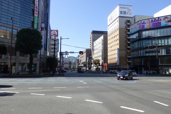 熊本市電の線路が見えた。 さて、熊本市街まで降りてきたので、せっかくだから熊本城をちょこっとだけ眺めていく。