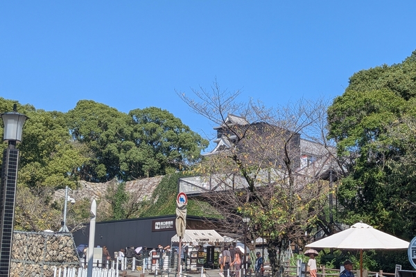 チラ見せ。 参考までに、熊本城の天守見学は有料で、ネット予約でチケット購入すると800円で見学ができる。相変わらず有料施設の見学には財布の紐が固いのだが、現在時刻は14:00。乗り放題パスの効力は今日まで生きているので、各駅停車を使って運賃を切り詰めたい。