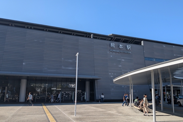 豊肥本線の終端でもある。 14:25、熊本駅に到着してエルコスさんを袋詰めにする。このまま帰京まで袋の中に入っていてもらうので、少し丁寧に組み立てていこう。