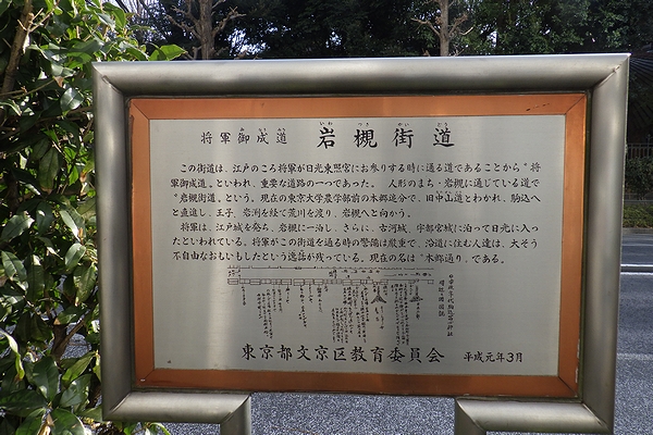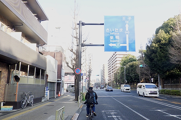 壱岐坂を登って武蔵野台地の上に出る。 本郷追分から先は日光御成街道沿いに駒込を目指す。歴史上では江戸時代の五街道と同様の整備がなされ、将軍の日光参詣に用いられた重要な道ということもあって、むしろR17よりも立派なつくりをしている。