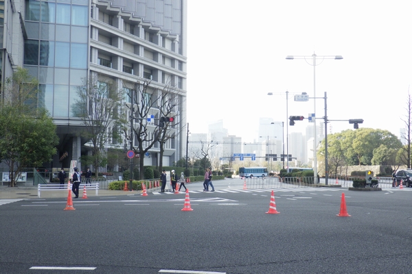 チェックポイントが設定されている小石川後楽園を華麗にスルーして内堀通りに出ると、何やら物々しい検問が敷かれているではないか。