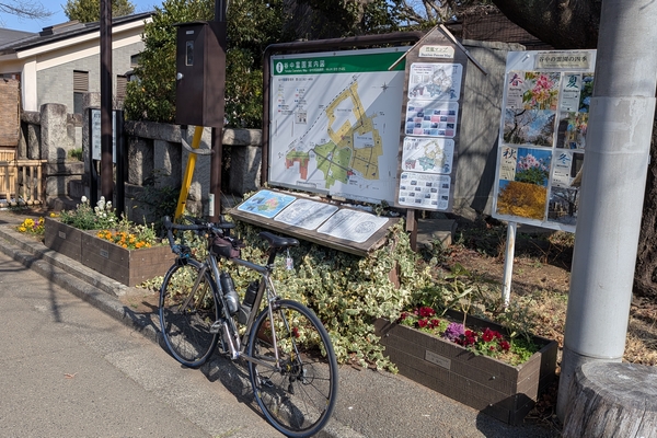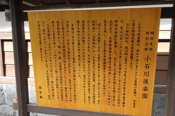 小石川後楽園の由来が書かれていた。 ここから折り返しとなるが、残ったカードは4枚。飛鳥山は丘越えになるし、谷中はさらに谷まで越える。そういう意味では外堀通り1本で往ける内藤新宿が最適か。