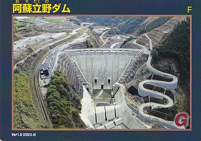 【コメント】 R57を阿蘇から下っていき、熊本の市街地が見下ろせるあたりまで来ると、道は急激に下りだす。このあたりは白川を底とする深い谷になっていて、視界をずらすとその高低差に身震いを起こすほど。 それだけ高低差があるということは、ダムを作るには適地ということ。ただし、その目的を語るには、昭和28年まで遡らなければならない。昭和28年6月に発生した西日本水害によって、死傷者1000人を越える戦後最悪の水害が発生した。これによって治水の対策が抜本的に見直された結果、昭和58年に着工し、41年の歳月を経て完成したという歴史がある。そのため、他のダムではあまり見られない、使用用途が純然たるFという特徴を持っている。 ダムの形式としてはGだが、その構造はGAに近い。これは、深い谷形状であることと、両岸壁の岩盤強度が比較的強いことで、合わせ技で強度を出しているからと考えられる。なお、ダム管理事務所では建設の歴史やダムの紹介など、自由に見学が可能になっているほか、ダム周辺の周遊も可能である。 ダムの至近には、本線上のスイッチバックで有名な豊肥本線立野駅があるので、そちらも観光の対象としてみてはいかがだろうか。 ……あと余談だが、管理事務所の展示物のなかに地元住民代表の祝辞が掲示されていて、そこには思いっきり「外野がダム建設の是非を偉そうに語るな!」的なことが書かれていたのが印象に残っている。 | |