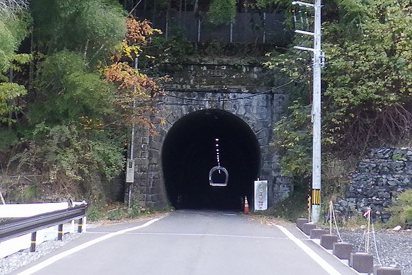 この区間では葉原と伊良谷だけが信号の交互通行。 隣にある伊良谷トンネルは、山中トンネルよりも距離が短いものの、全体的に左へカーブしていて見通しが悪い。トンネル内で鉢合わせにならないように信号で規制をかけているのが分かる。