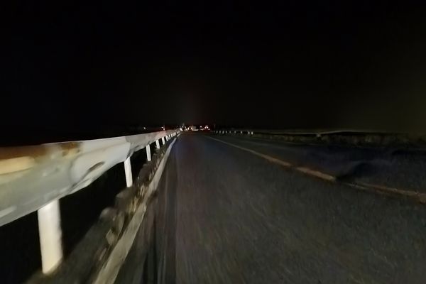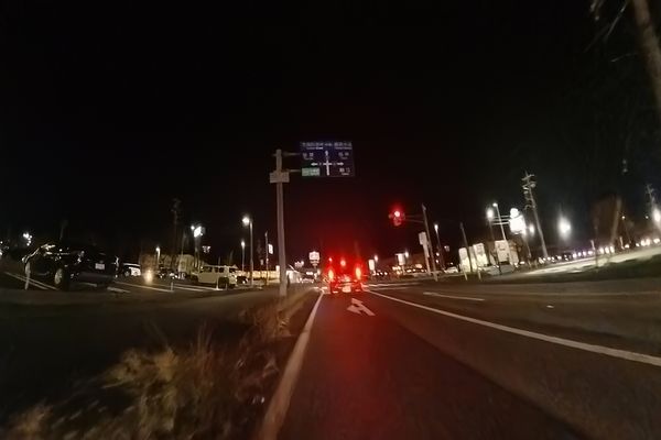 すっかり陽が落ちた。 R8に出てしまえば話は早いのだけれど、こちらのほうが交通量が少なくて自転車としては走りやすい。