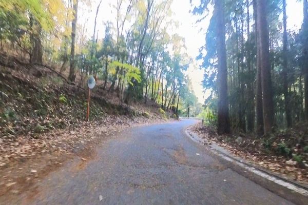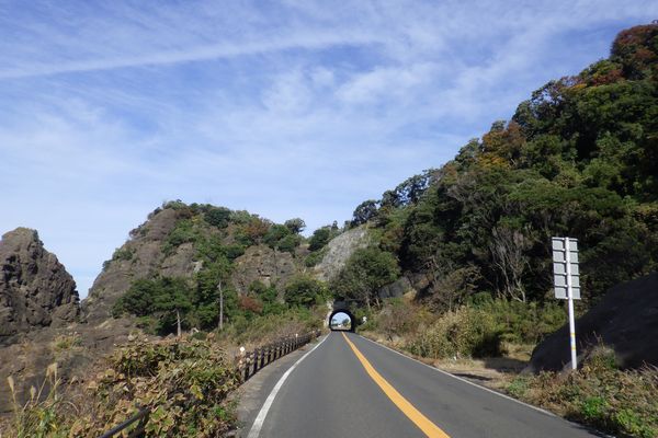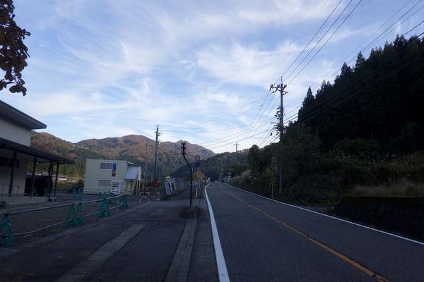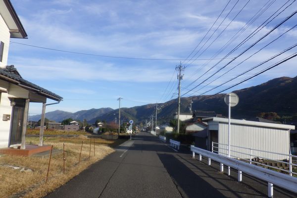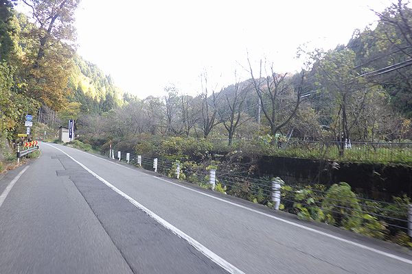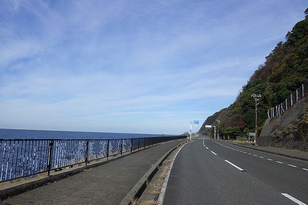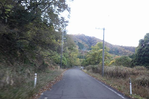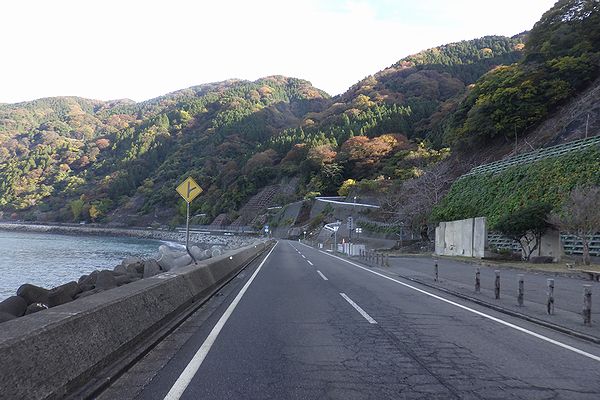 前回はここで右折。このあたりでは登り勾配が穏やかな道だ。 このあたりは、丹生山地と呼ばれる山岳部が海沿いまで迫っていて、R305はその切り立った崖下を通っている。海岸線から内陸部に潜り込もうとする場合、例外なくこの山地を越えなければならないのだ。