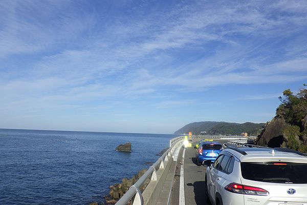 左手に敦賀湾を望む絶景ポイントで、右手にはすっかり紅葉が色づいた山々が広がっているというロケーションが続く。そう、ロングライドするロケーションとしては最高レベルに良質な道なのだ。