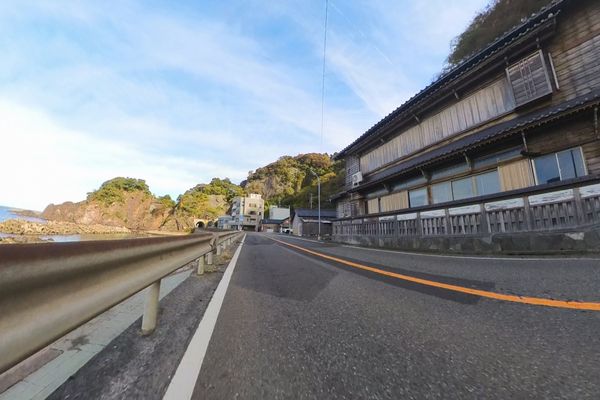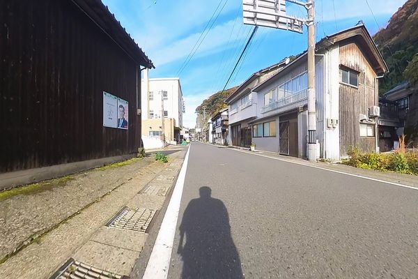 厨では旧道を往く。集落を突き抜けるので道はちょっと狭い。 ここから先に越前岬という、このあたりでは最も西に突き出た地点を通過する。先ほどまでの人の気配は姿を潜め、侘と寂が融合した、なんとも雰囲気ある小さな漁村を抜けていく。
