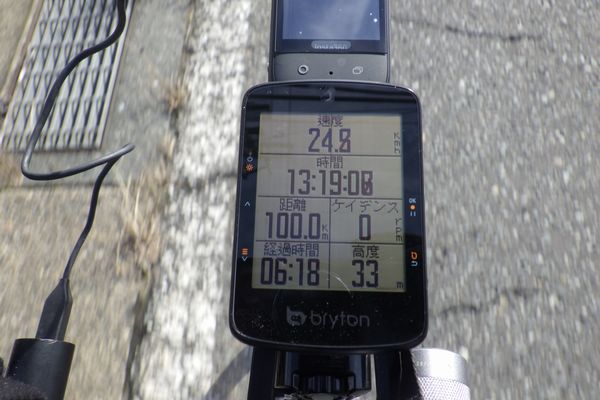 さて、世間話をしながら進むこと暫し、ここらへんで100キロ走破。