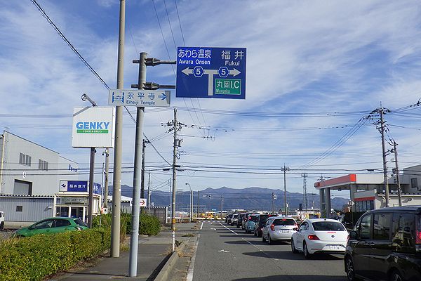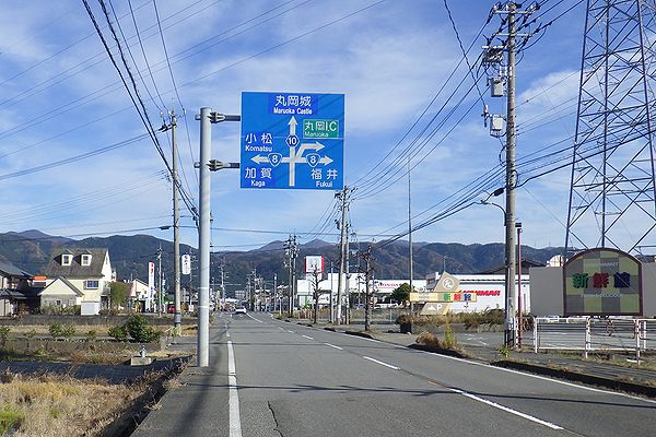永平寺の文字が登場しだす。 そこからさらに進んで北陸新幹線の高架を潜り、R8交点までやってきた。