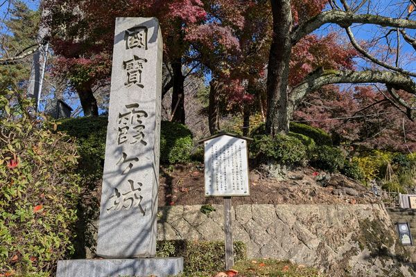 霞ヶ城とも呼ばれている。合戦時に大蛇が霧を吐いて城を隠したという伝説がある。