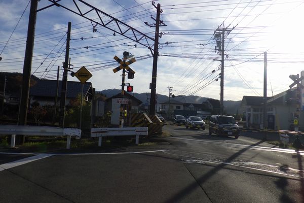 永平寺口駅脇の踏切。永平寺線はここから分岐していた。
