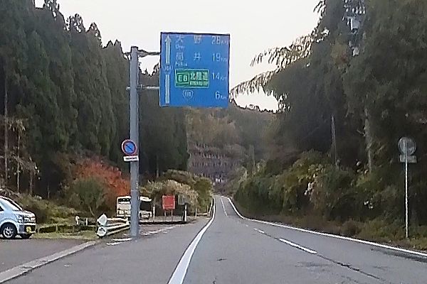 三連休の中日だからなのか、交通量は皆無。 青看板に東尋坊の文字が登場しだす。どうやらその手前に道の駅があるらしい。