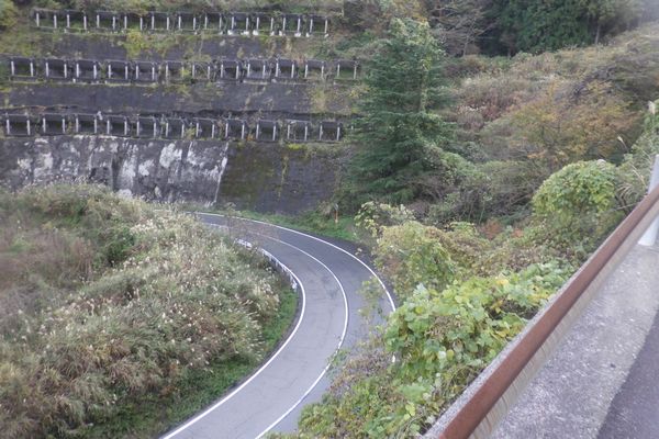 紅葉がイイ感じになっていたが、よく見ると8号防災区間が高い位置を通ってる。 そういえば、出撃の日の数日前まで、この道は通行止めになっていた。