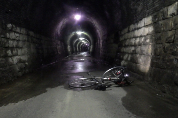 近くに集落があることもあって、ここだけは他のトンネルと比べると、マイルドな感じになっている。LED照明も近年取りつけられたもので、お陰で路面状況も確認しやすい。そしてこれくらいはエルコスさん許容範囲らしい。